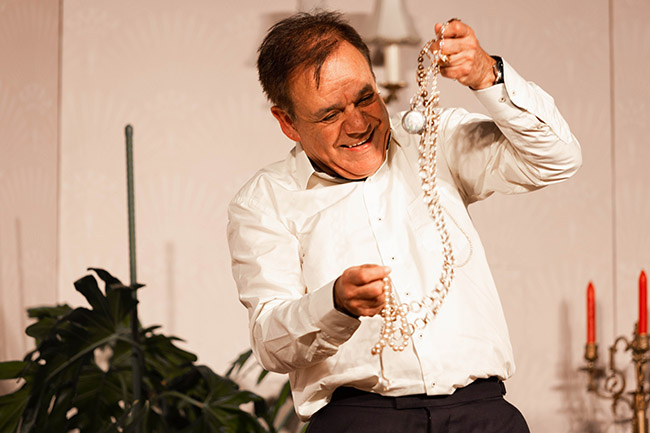 Még szerencse, hogy az özvegy sem most jött le a falvédőről! Színészi múltja talán megmenti őt!... Vagy inkább a betörőt kell megmenteni? Hogy ki az áldozat és ki lesz a nyertes? Mire a kastélyban éjfélt üt az óra, ebből a romantikus vígjátékból minden kiderül!