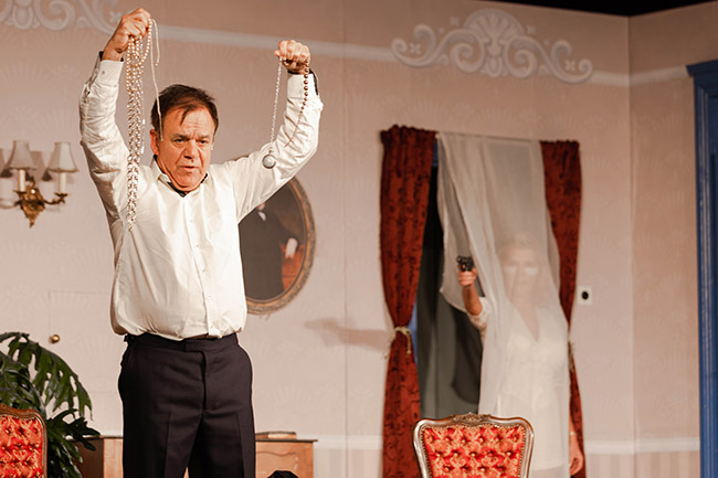 Az özvegy milliárdosné (Nyertes Zsuzsa) tetten éri a gátlástalan betörőt. (Straub Dezső) Vigyáznia kell, mert úgy tűnik a gonosztevő nem teljesen „100-as”!