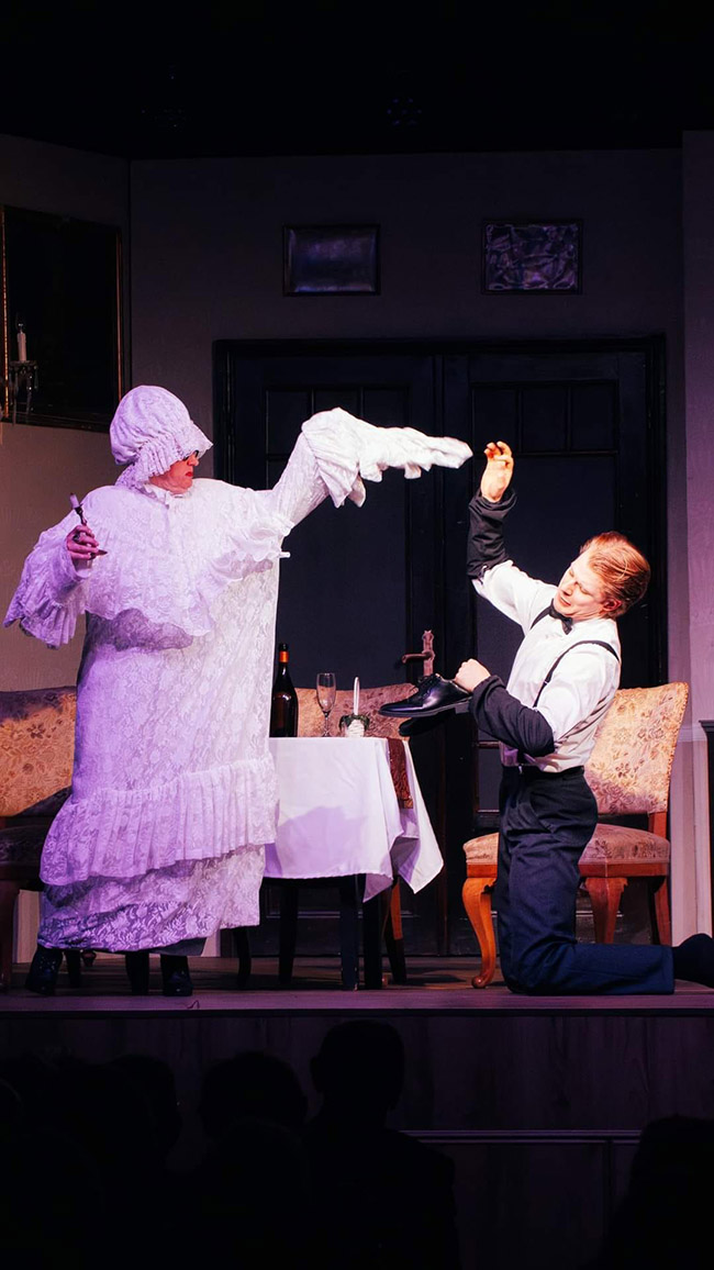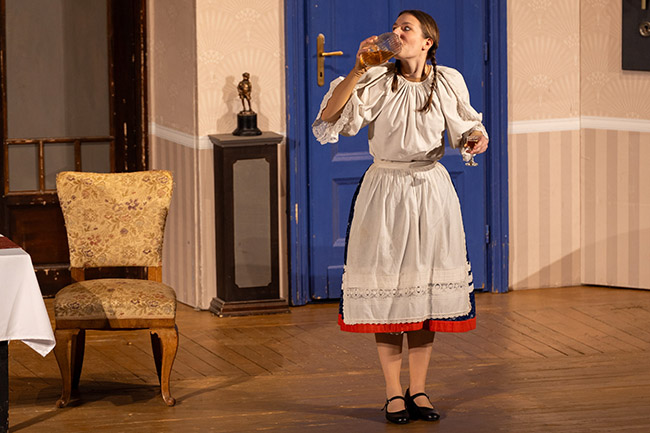 Az idős nevelőnő: „Én, kérem, a kötelességemet teljesítem, felügyelek, mikor vizsgára készíti elő Lenke kisasszonyt, ő pedig, kérem, ki sem merem mondani… szóval, én egy percig sem maradok ebben a házban, utóvégre a szegény ember se kutya.”