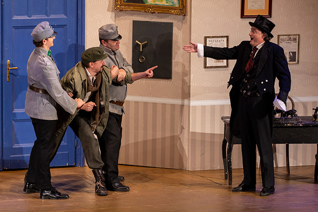 A betörő: „Csak azért mondom, mert engem hiába üt pofon, én nem párbajozom. Maga mindennek az oka! Az alkalom szüli a tolvajt! És ön szülte az alkalmat. Ön ennek a betörésnek a nagypapája!”