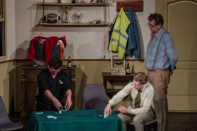 „Forró nyári éjszaka. Oscar Madison (jóképű, elvált, 43 éves) nyolcszobás lakásában vagyunk, a New York-i Riverside Drive-en. Jó hangulatú pókerparti zajlik, de a játszmát megszakítja Félix (ideges, vibráló, 44 éves) késői érkezése, akit felesége előző este kirúgott otthonról.”